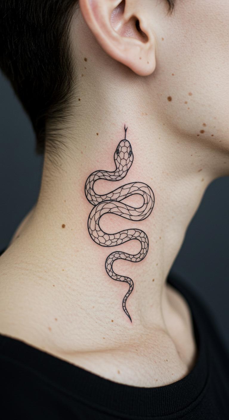 Use AI to make your snake unique. It tailors the design to you. Place it on your neck for a bold feel. Start with AI apps on your phone. Input “simple snake” and edit. They are free to use. Share the design with artists. They might charge less for ready ideas, around $90. Print the AI output and trace it at home. Test with a marker. Add personal twists like a pattern. Your neck shows your creativity. Cover with a scarf as needed. This method saves time and money. Keep the design straightforward.