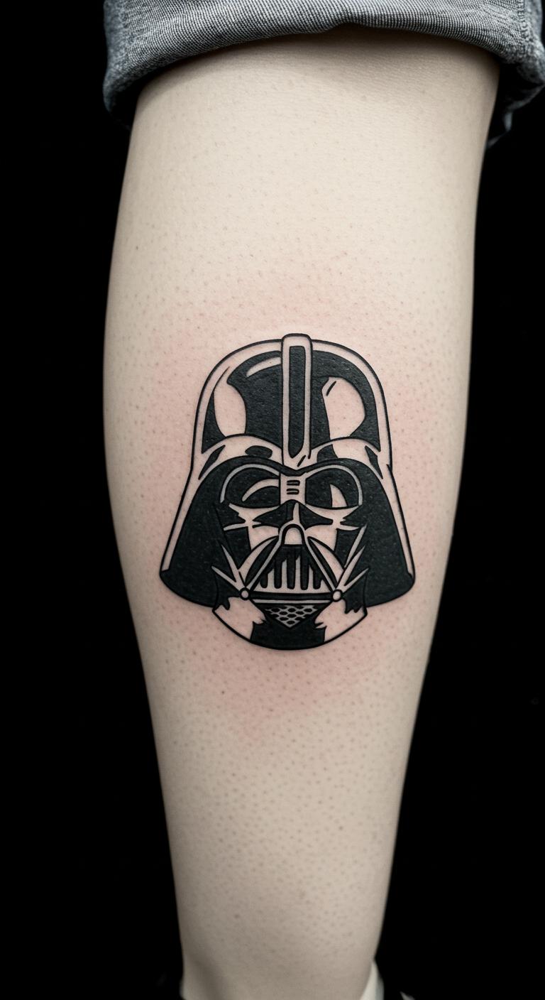 Go for a Darth Vader helmet outline on your shoulder. It captures the dark side in one shape. Short sessions make it painless. Draw it freehand at home for practice. Use washable ink pens to preview on your body. Find affordable artists online who specialize in outlines. Stick to basic tools like a fine-tip pen for your sketch. This idea suits small spaces and daily life. Try it on a friend first with henna kits under ten dollars.