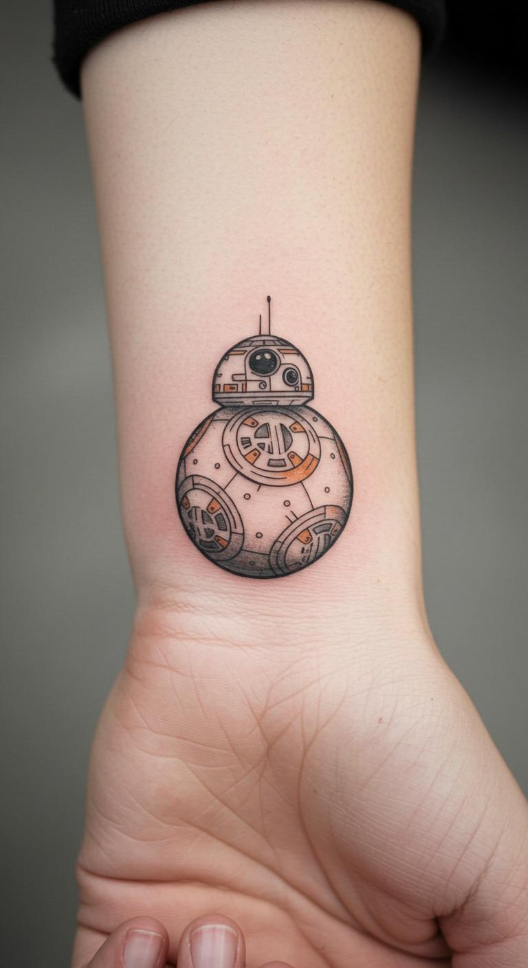 Go for BB-8 on your hand. It rolls out cute and simple. Few details keep costs low. Start drawing circles at home. Pick up budget temporary tattoos. Check artist portfolios online. Fit it into daily routines. Test with round stamps. This design adds playfulness.