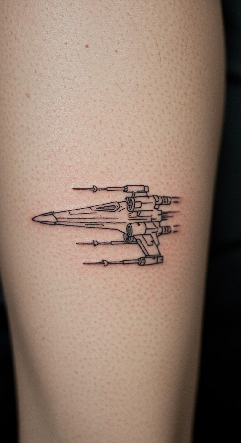 Add an X-Wing to your thigh. It soars with minimal flair. Short appointments help beginners. Sketch wings on paper. Use henna for safe trials. Find flash tattoo events. Position for movement. Experiment with templates. This idea flies high affordably.