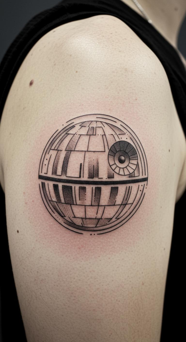 Opt for a Death Star on your arm. It orbits in style. Easy circles save time. Sketch rounds at home. Try sticker tests cheaply. Find deal artists nearby. Place it strategically. Use apps for views. This design blasts off creatively.