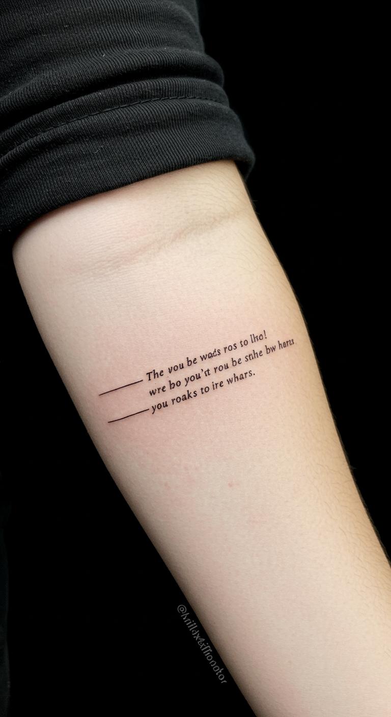 Add a quote to your arm. It speaks volumes briefly. Simple script saves time. Write it out. Use temporary fonts. Find low-fee artists. Place for reading. Try with pens. This design shares words.