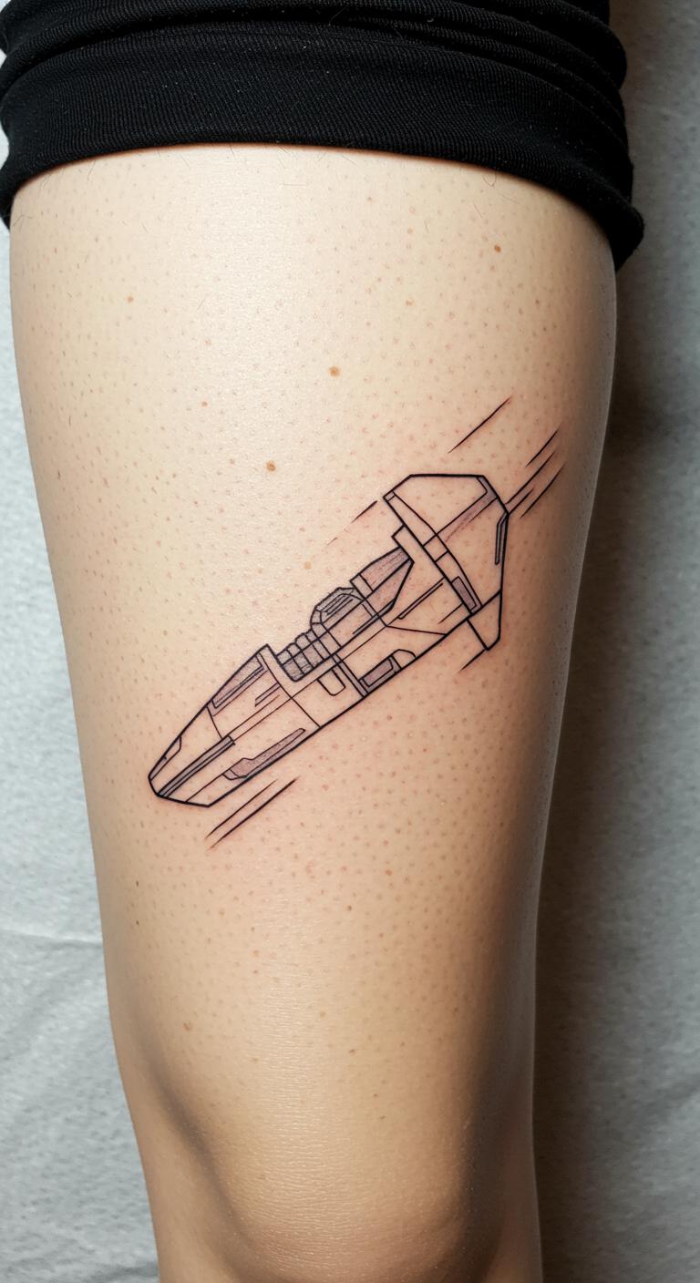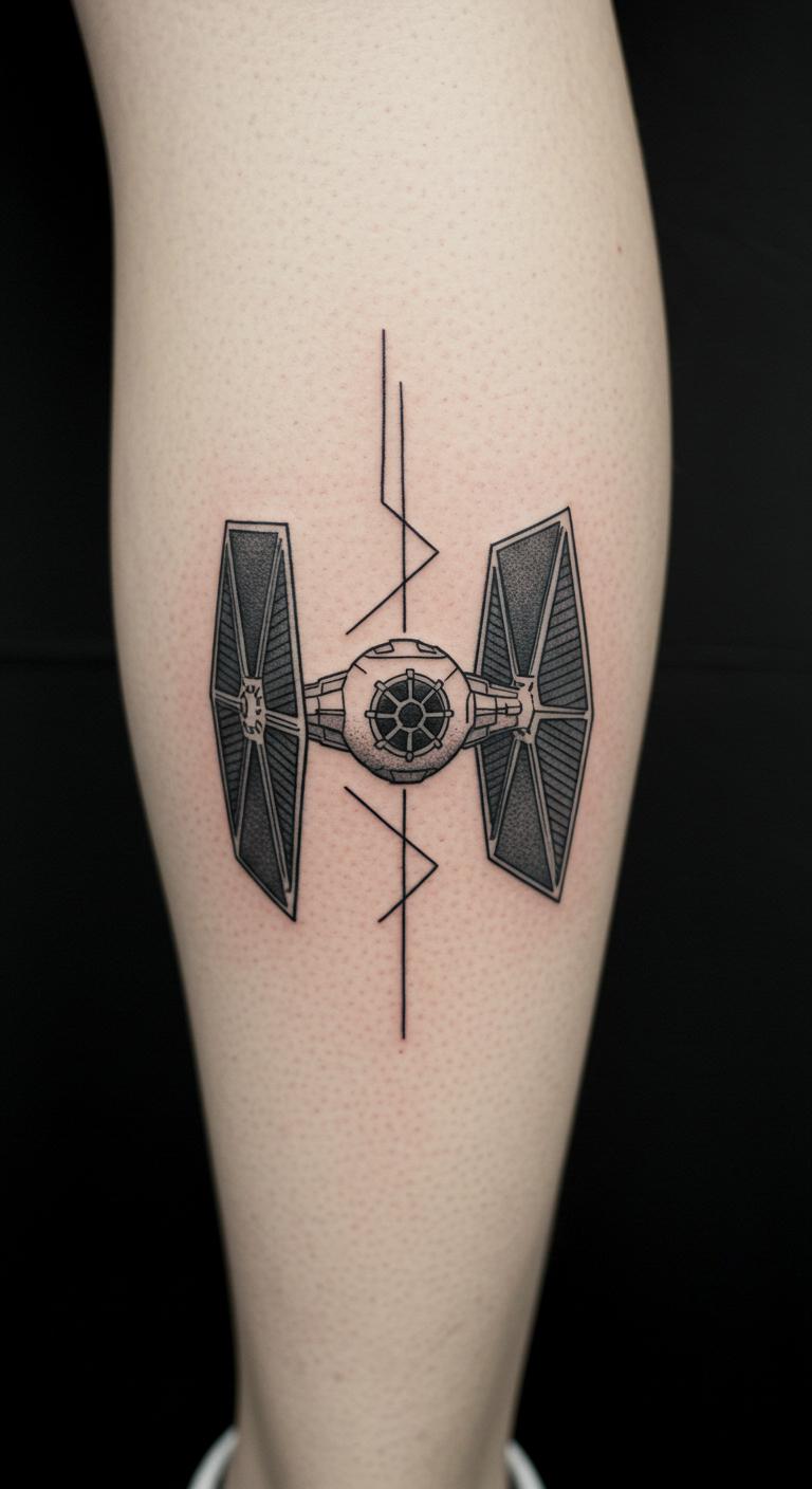 Try a Tie Fighter on your leg. It zooms in with few lines. Fast sessions keep it painless. Draw it with household pencils. Use sticker sets for previews. Check for artist discounts online. Place it out of sight if wanted. Experiment with angles using apps. This design fits active lifestyles.