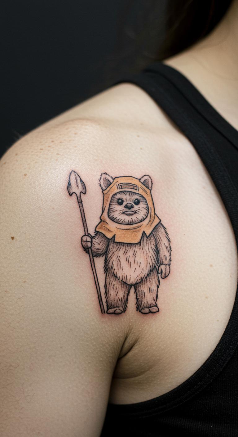 Add an Ewok to your shoulder. It hides in style. Minimal figures fit budgets. Draw it lightly. Use temporary kits. Seek local deals. Keep it fun. Test with sketches. This design ends on a high note.