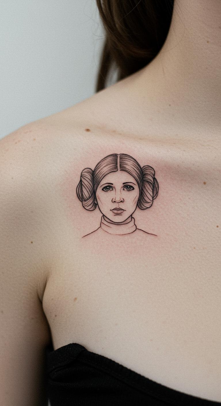 Add Leia buns to your neck. They nod to strength in basic forms. Easy ink means quick visits. Practice with circular stencils. Get affordable temporary options from stores. Seek artists with fan themes. Hide it under hair if needed. Try drawing with makeup first. This idea honors heroes subtly.