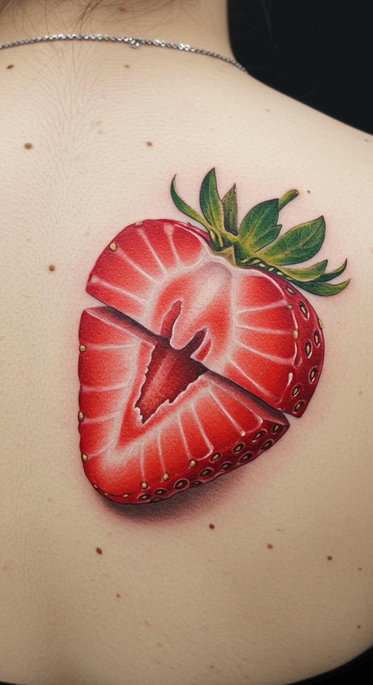 A sliced strawberry tattoo adds a unique angle to the design. It symbolizes the sweetness of life and the beauty in simplicity. This design can focus on detail, showcasing the fruit’s inner texture and color. Costs may vary, particularly if opting for realism. Find an artist skilled in fruit designs for a personalized image that’s still chic.