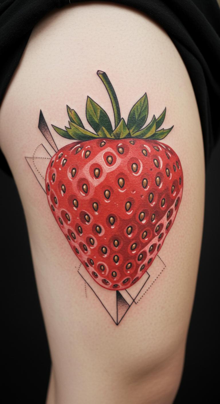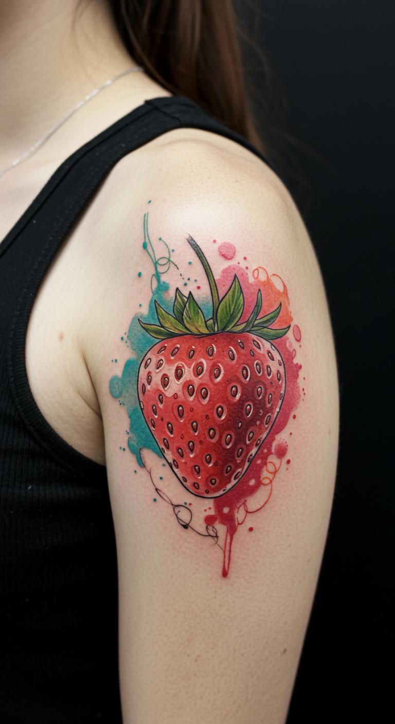 Abstract designs bring a modern twist to the classic strawberry imagery. This style focuses less on realism and more on emotion and form. Artists can play with colors, shapes, and textures to create one-of-a-kind pieces. It reflects personal taste and artistic individuality. Look for artists who specialize in abstract work for a unique design. Depending on the complexity, be prepared for varying costs, as intricate work can take longer.