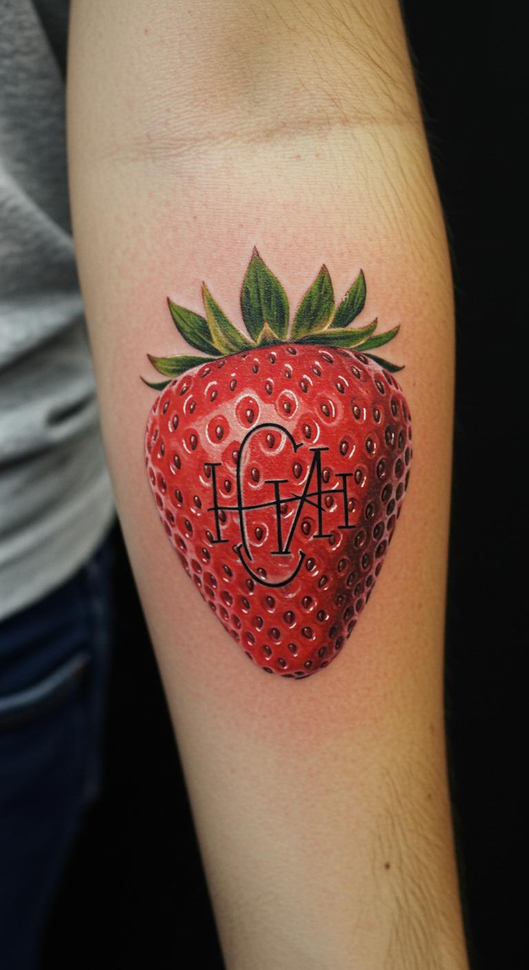 Adding text to a strawberry tattoo personalizes the design. This could be a word that resonates deeply, like “sweet” or “love.” The combination adds meaning beyond the fruit symbol. Choose a font that complements the tattoo’s style for a cohesive look. Since smaller tattoos are more budget-friendly, consider keeping it simple. Work with the artist to ensure that both elements flow harmoniously.