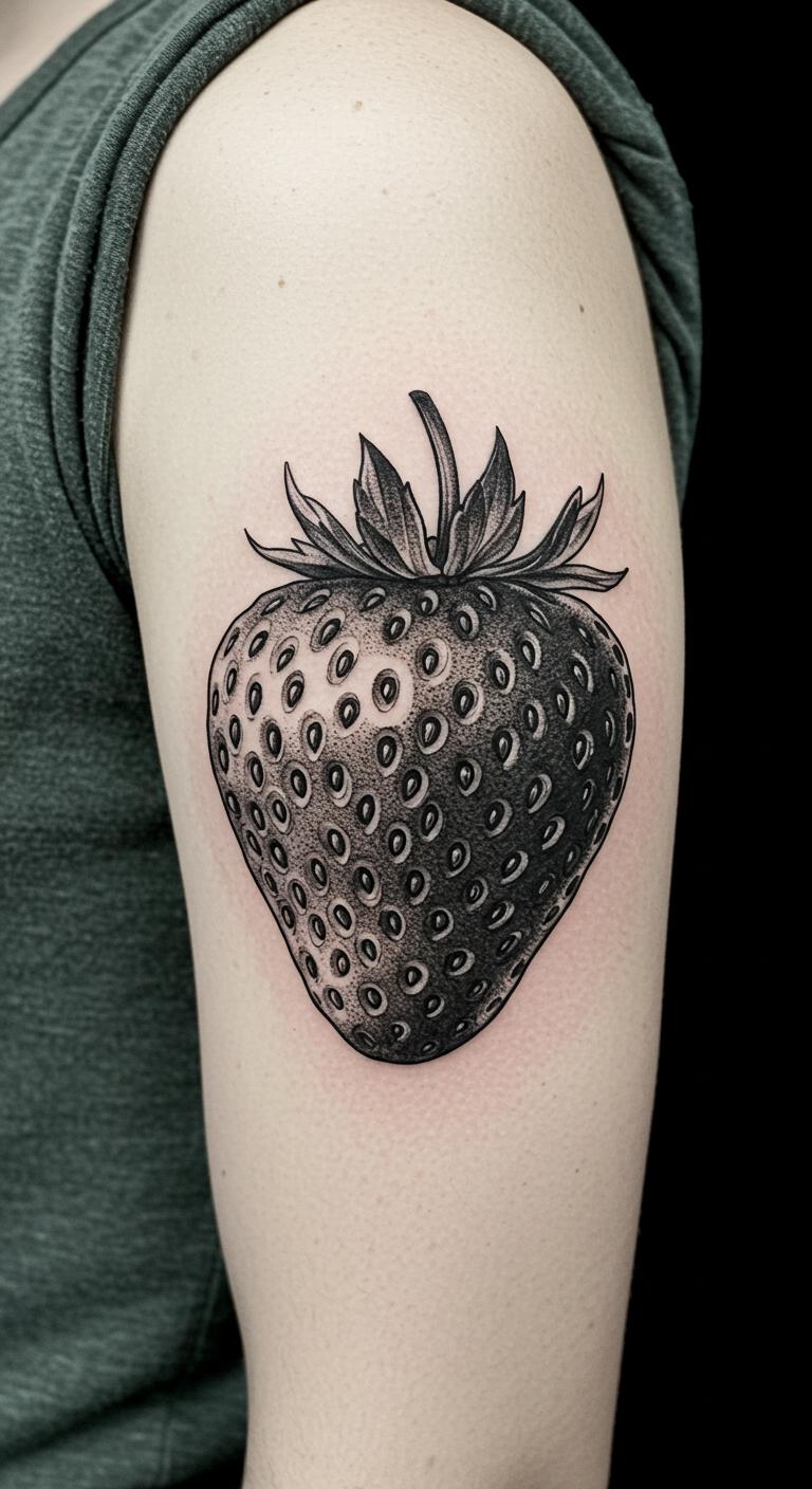 Blackwork tattoos focus on dark ink and shapes. A strawberry in blackwork can appear striking and bold. This style deviates from typical colorful fruit tattoos and offers a unique perception. The minimalist palette draws attention to form and detail. Costs can vary based on tattoo size, complexity, and artist reputation. Research portfolios to find artists skilled in blackwork to ensure your design stands out.