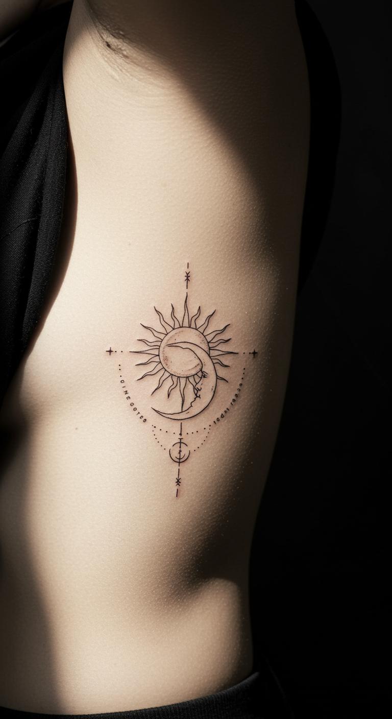 Pair your sun and moon with a short phrase for added meaning. Try your rib for a personal hideaway. Keep the words simple, like ones about balance. Write phrases on paper and pair them with drawings. Use a phone app to overlay text on photos. Look for phrase experts in nearby studios; they charge less for text. Heal with soft fabrics you have. Bold the action: write phrases on paper. It helps you decide fast.