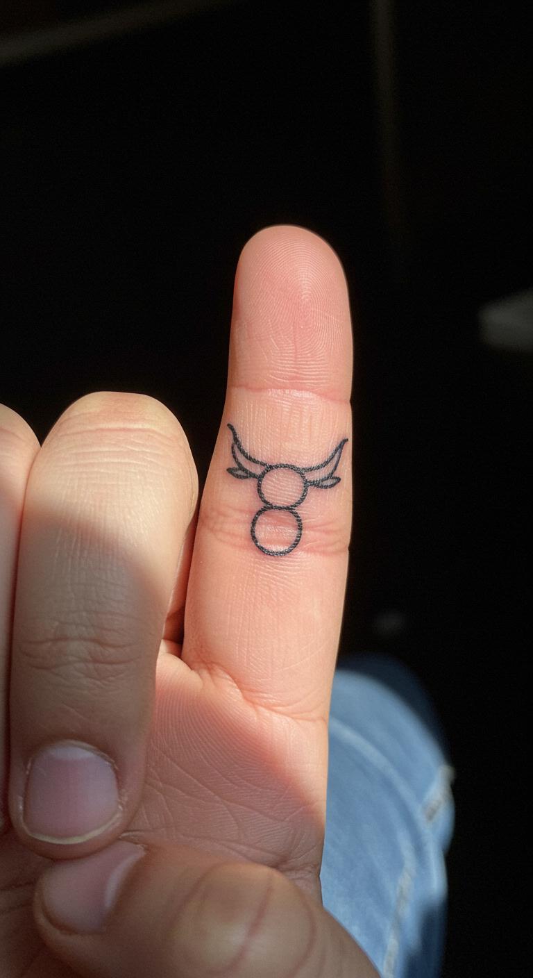 Use Taurus initials on your finger for a personal touch. Letters in simple lines. Write initials on paper first. No charge. Finger tattoos cost $50. Make them bold. This design is quick. Try with nail polish. Cheap and easy. It initials your story.
