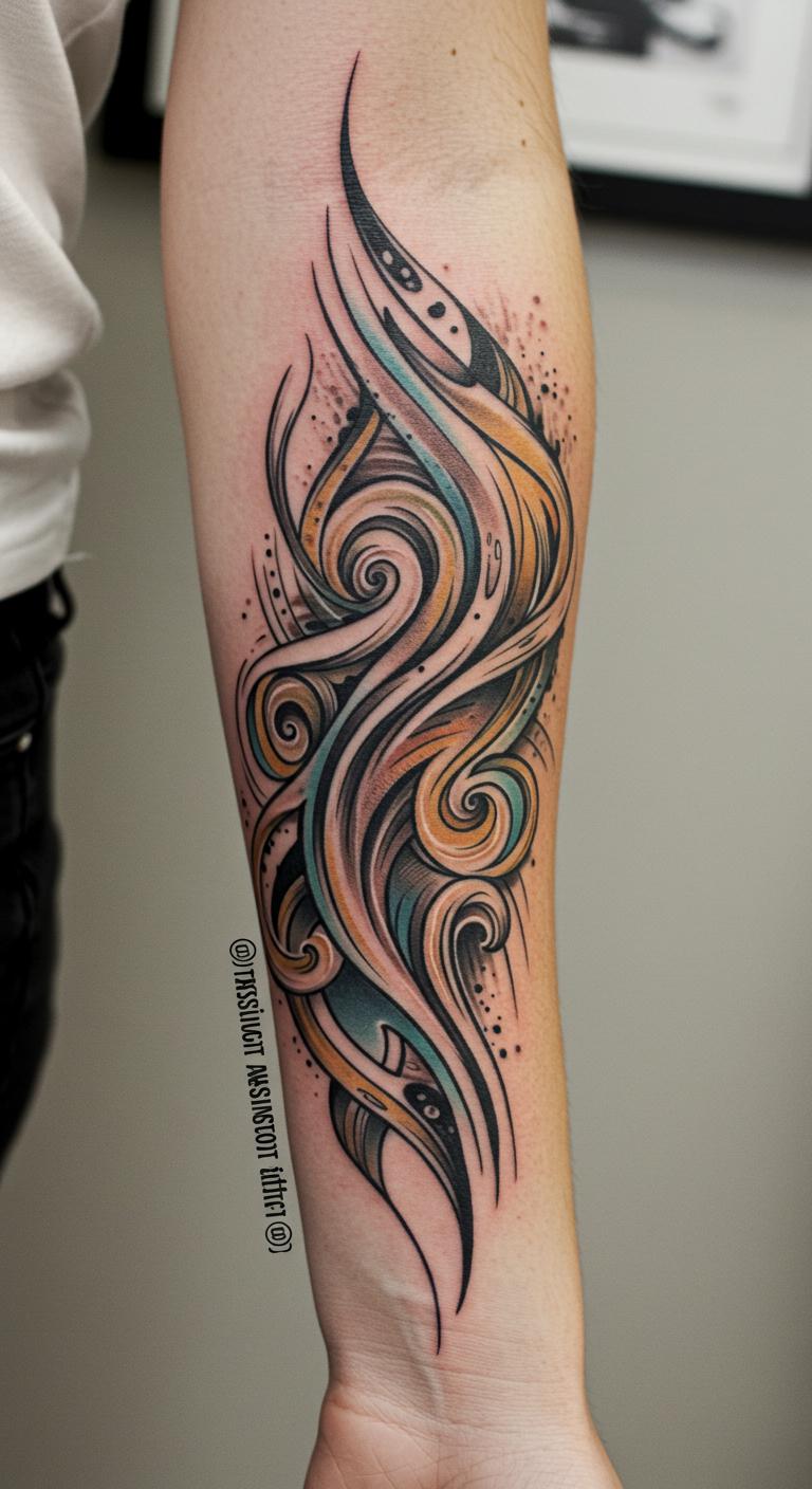 Abstract shapes on your arm offer creativity. Draw abstracts at home. No charge. Artists for $55. Add your spin. Unique expression.