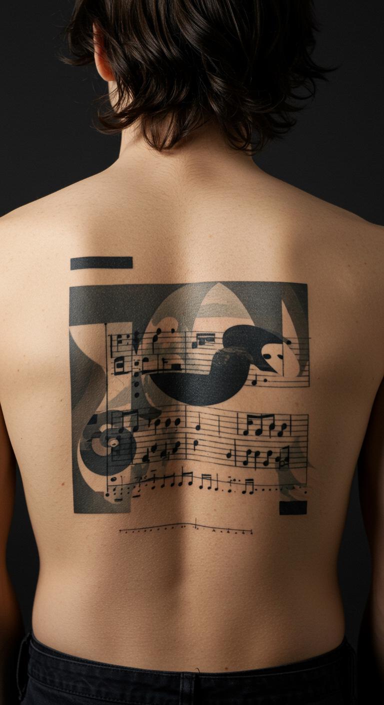 Abstract reps on your back interpret songs. Sketch abstracts free. Inking at $65. Make it personal. Creative outlet.