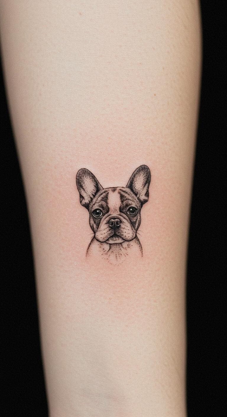 Capture your Frenchie’s face in a small portrait. Start with a photo of your dog to guide. Print it and trace at home for free. Find an affordable artist online for under $100. Focus on eyes and ears for charm. Place it on your arm for easy viewing. Add a small bat ear detail to personalize. This shows your pet’s playful spirit. Test with henna kits from the store. They are cheap and wash off. Keep the design simple to speed up the process. Use regular soap for initial care. It’s a great way to remember good times.