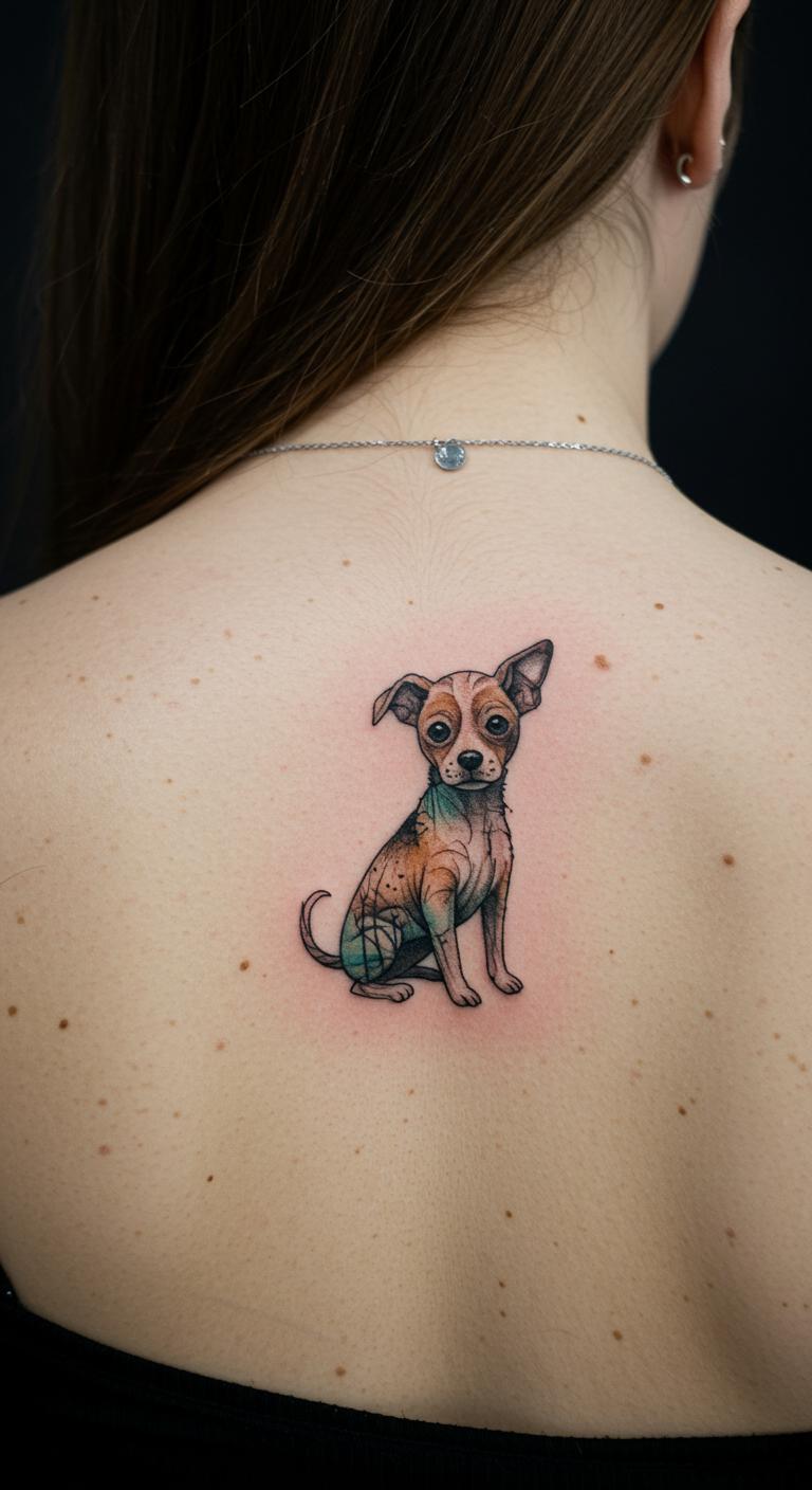 Go for a Chihuahua outline to highlight energy. Sketch it roughly on paper yourself. Download free breed images to copy. Look for artists who offer deals for small work. Aim for a spot like behind your ear. It hides well but feels special. Add a tiny collar for a fun twist. This keeps costs below $60. Practice with washable markers at home. They let you experiment without risk. Choose black ink for timeless appeal. Cover it with a band-aid after for protection. It’s perfect for daily reminders of your pet.