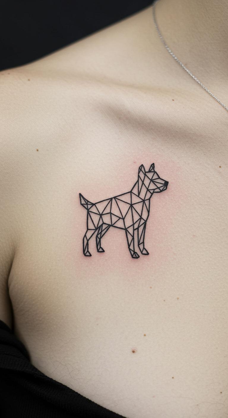 Use geometric shapes for a modern dog look. Build it from triangles at home. Free graphic apps offer templates. Share your sketch with an artist to cut time. Spot it on your shoulder for cover options. Add edges for a custom feel. Geometric styles often use less ink, saving money. Practice with string art as a DIY prep. It costs pennies. Seal it with basic bandage from your kit. This trend feels fresh and personal.