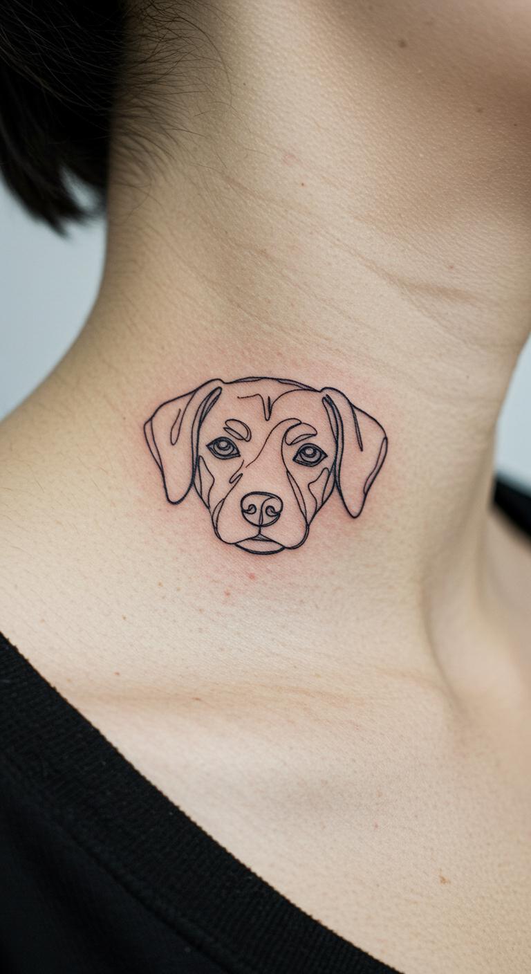 Opt for line art to outline a dog face. Trace a simple face on paper yourself. Online videos guide you for free. Find artists who specialize in lines for better deals. Tuck it on your neck for easy access. Curve the lines to match your pet’s features. Test with body paint from home supplies. It’s budget-friendly and removable. Keep it monochrome for quick sessions. Use gentle washcloths for early care. This design captures essence without complexity.