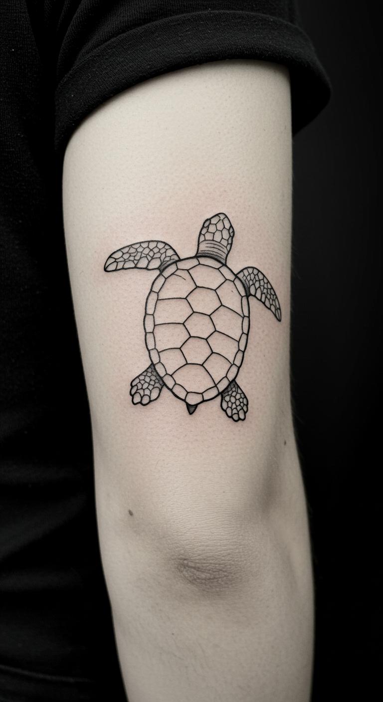 A black and white outline turtle stays classic. Think of a stark, unfilled shape. Tattoo it on your elbow for ease. Access free outline resources. Sketch outlines quickly at home. Go for low-price artists. Bold the outer lines. This design evokes timeless appeal. Use outline stencils for fun. Opt for basic styles to cut costs. Keep it simple and strong.