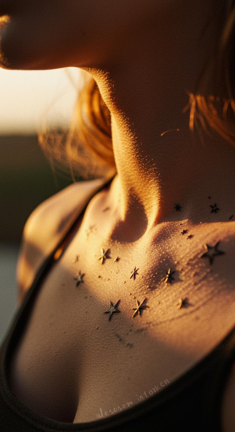 The collarbone is a trendy spot for small, minimalist tattoos. The delicate skin here shows off fine-line designs beautifully, whether tiny stars, small symbols, or short words. This area is budget-friendly since most designs here are small and visible, making it a great place to start. To keep costs down, opt for black ink outlines without extra details, and try sketching your ideas directly on your collarbone using cosmetic pencils before inking.