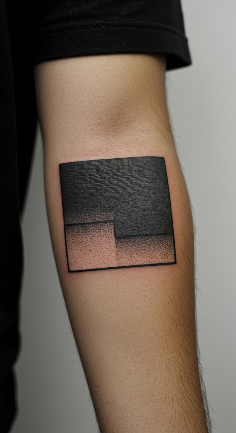 Blackwork minimalist tattoos use solid black areas with clean edges for a strong look. Simple blocks, bands, or geometric patterns fit this style well. Because they rely on solid fills, blackwork tattoos tend to heal well and stay visible. Smaller blackwork designs require less time and ink, making them more budget-friendly. Sketch block shapes or lines at home to get ideas, then ask your artist about ideas to incorporate negative space.