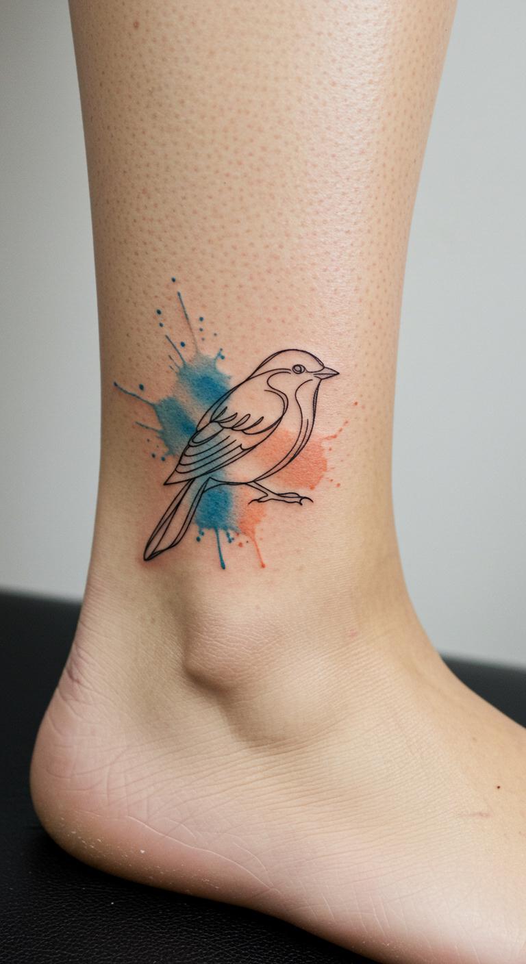 Blending watercolor elements with fine-line minimalist tattoos adds color flair without losing simplicity. The watercolor splashes balance the understated line art. These tattoos can be affordable when watercolor is limited to small accents. Talk to your artist about soft, minimal color use if concerned about cost. Watercolor inks often require careful aftercare, so prepare ahead.