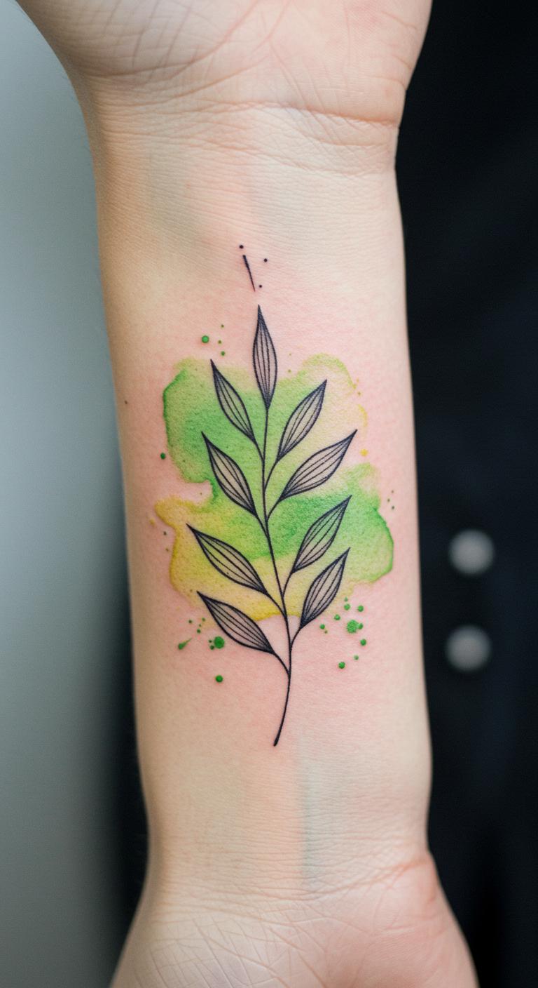 Watercolor touches bring subtle color to minimalist designs, adding a splash of life without overwhelming the simplicity. A favorite is combining fine-line black ink with soft, blended watercolor for natural motifs like leaves or flowers. These tend to be affordable when the colored area is small and the design stays simple. For DIY inspiration, use watercolor paints to experiment with blending before finalizing your design with your artist.