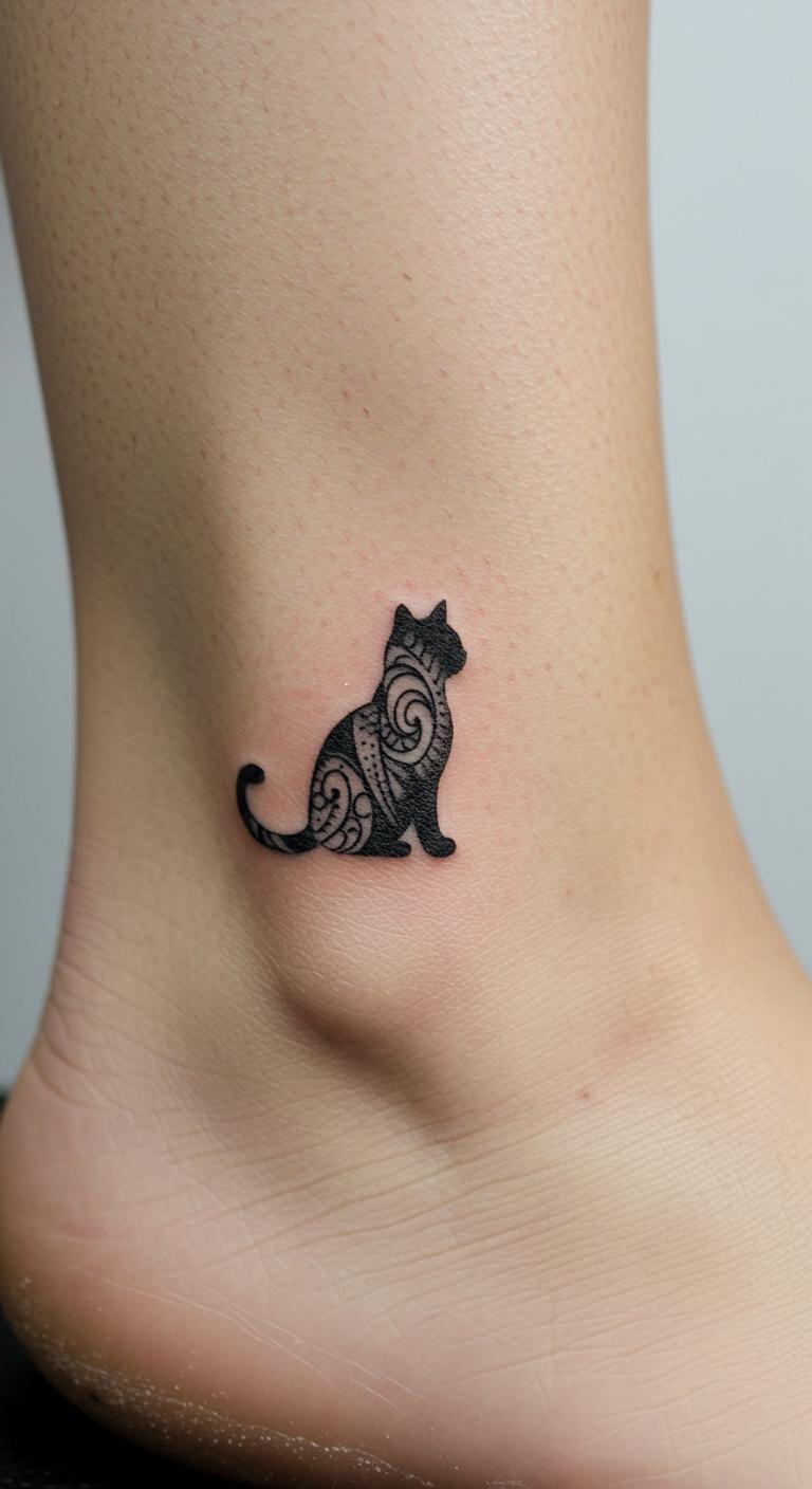 Black silhouettes of animals offer a minimalist but bold style. Cats, birds, or wolves in tiny solid shapes can represent personality traits or animal totems. These tattoos are cost-effective because they use simple black fills rather than shading or color gradients. For a simple DIY touch, trace your pet’s outline or a favorite animal’s shape and share it with your artist for a custom silhouette.